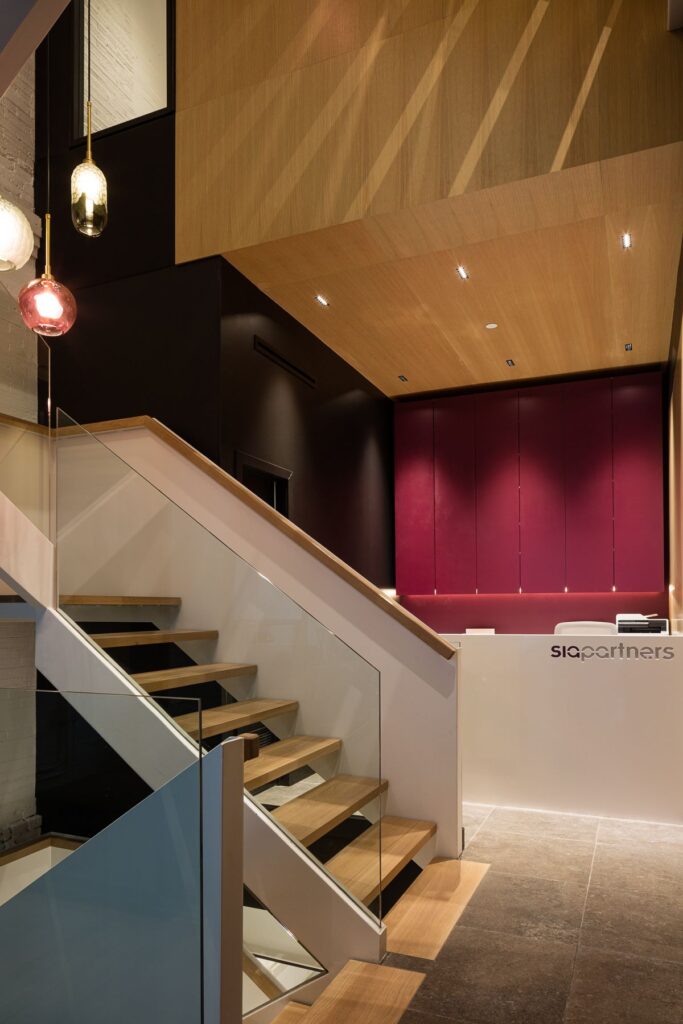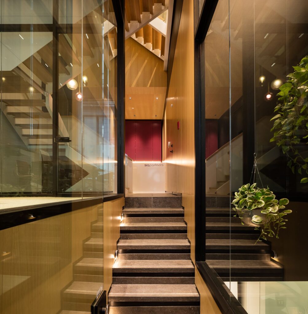 Projet de rénovation et d’aménagement majeur, situé dans le cadre exigeant d’un immeuble historique du Vieux-Montréal, cet ensemble de bureau étalé sur quatre étages a représenté un défi majeur pour tous les professionnels impliqués.