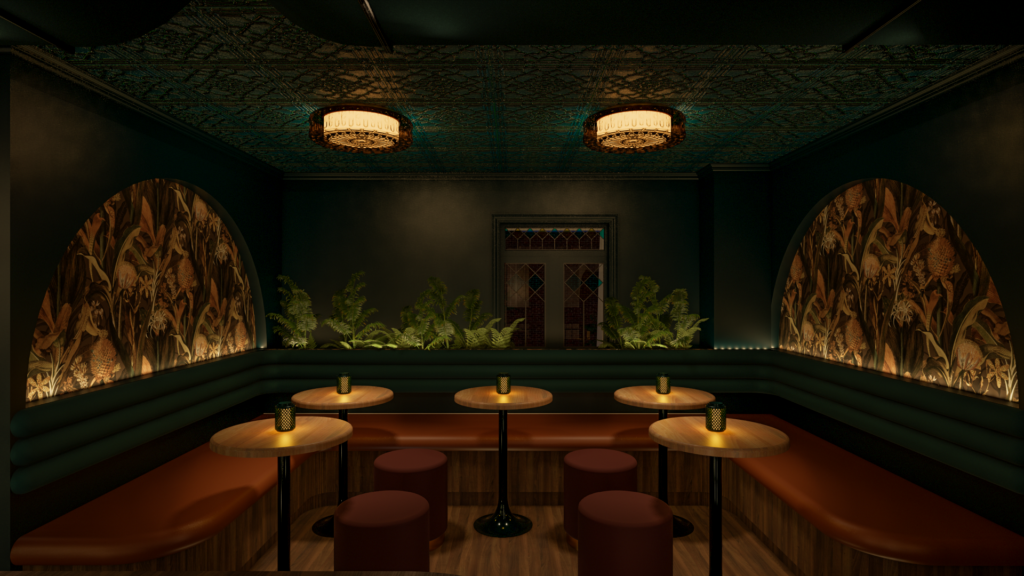 This project is characterized by the presence of a highlighted mezzanine that evokes the iconic balconies of New Orleans. From the balcony of this mezzanine, two distinct atmospheres emerge, cleverly juxtaposed in space.