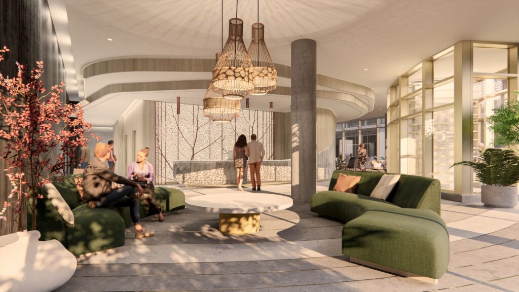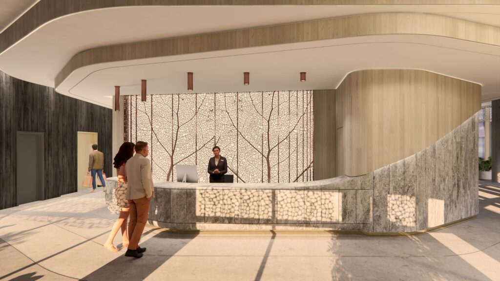 We were mandated to handle the interior design of the common spaces and corridors, in collaboration with Cree community design aesthetic. Particular attention was paid to the integration of elements emblematic of First Nations culture, wherein the spaces created are in perfect harmony between the representation of the Eeyou Istchee territory and the Montreal urban landscape.