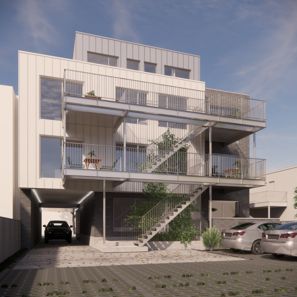 In addition to enhancing the residential offerings in the area, the project proposes to improve the site's greenery with grassy areas and permeable paver parking spaces, contributing to reducing the existing heat island effect.