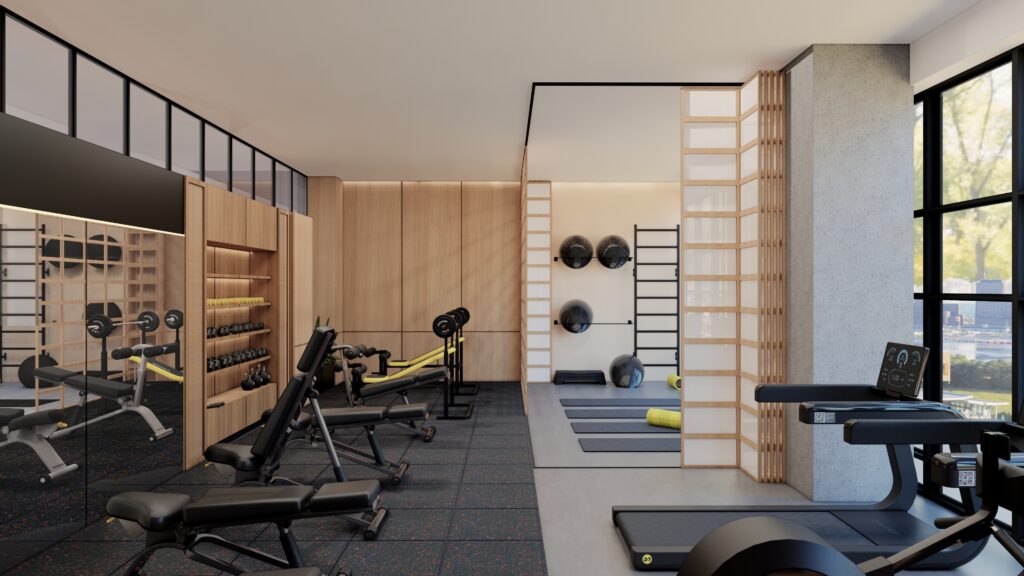 Outre les options de location, la propriété comprend des espaces actifs en relation avec la rue Bank. On y retrouve, un comptoir service café en journée et des espaces de travail, ainsi que des commodités à l'étage supérieur comprenant une salle de sport sur deux étages, de vastes salons, une piscine extérieure et une terrasse, le tout destiné à une clientèle jeune en pleine ascension.