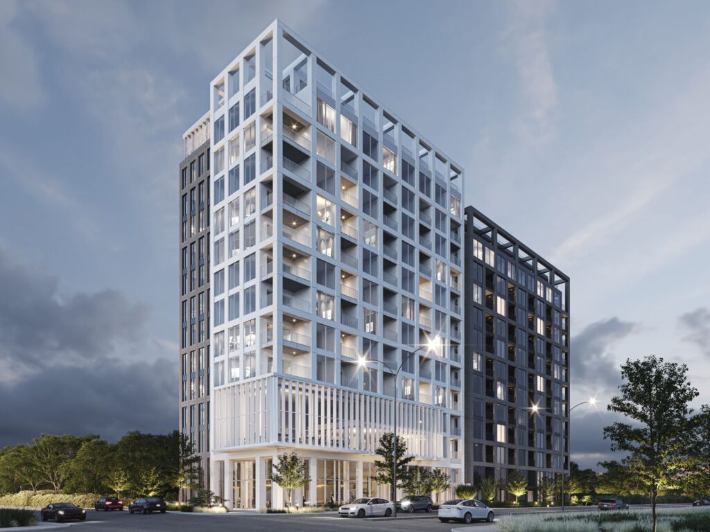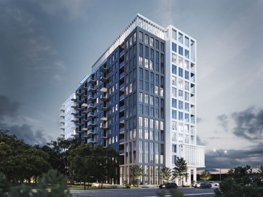 Ce projet marque l'extrémité Sud d'un nouveau quartier résidentiel en développement et comprend 192 unités en copropriété réparties sur 12 étages avec mezzanines.