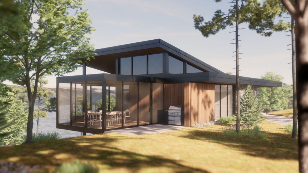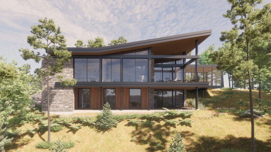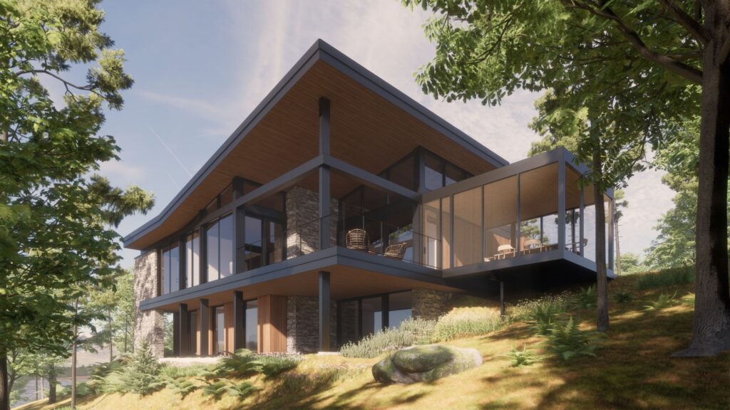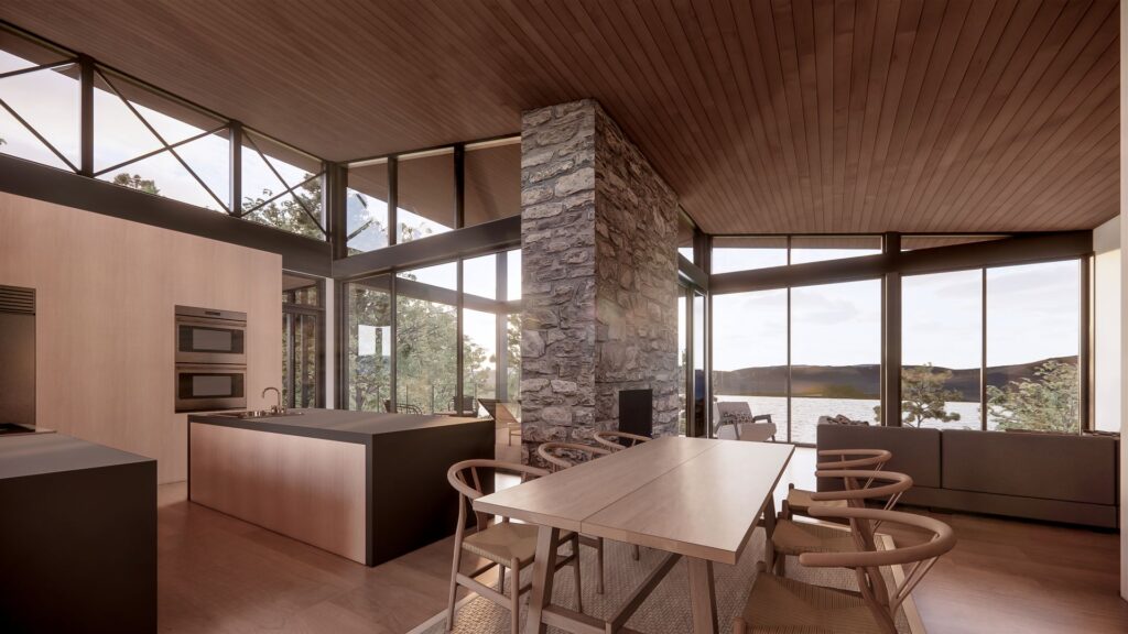 En collaboration avec BONE Structure, ce projet s'insère délicatement dans le paysage de bord de lac par ses lignes épurées. Implanté de plain-pied au point culminant du terrain, une surélévation du toit en clairevoix permet d'immerger de lumière les espaces de vie tout en préservant l'intimité des habitants. Les ouvertures de la résidence sont maximisées côté lac afin d'offrir les meilleures vues sur les couchers de soleil sur le lac de la mine.