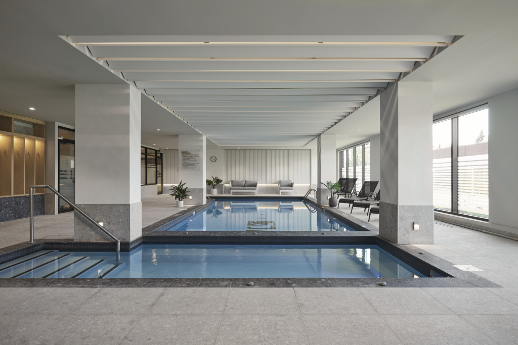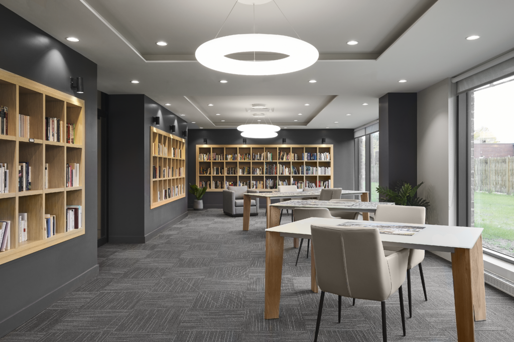 Nouvelle résidence de luxe pour personnes âgées située à Saint-Bruno-de-Montarville. Les vastes aires communes offrent une multitude d'activités et d'endroits rassembleurs pour les résidents. Rappelant toujours la proximité de la nature, les espaces intérieurs ont été conçus et aménagés avec soin de façon à créer une ambiance douce et invitante. Ces derniers harmonisent avec délicatesse un décor contemporain et naturel, grâce à des tons chaleureux et une verdure abondante.