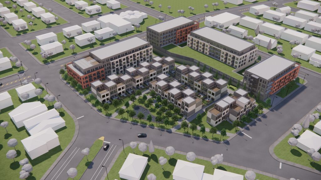 Ce projet consiste au redéveloppement d’un centre commercial en un projet mixe, à moyenne densité, axé sur le développement durable et les déplacements actifs.