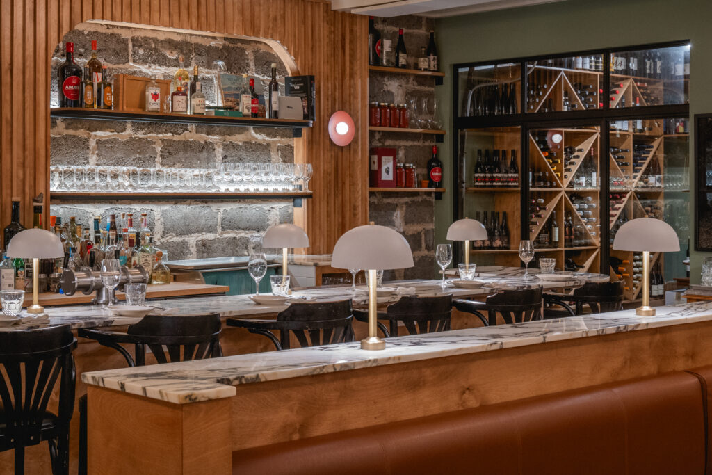 Empreint de simplicité par une palette claire, des matériaux naturels et des arrondis, l'espace est conçu pour créer un environnement familier et confortable pour apprécier cuisine à la fois réconfortante et raffinée.